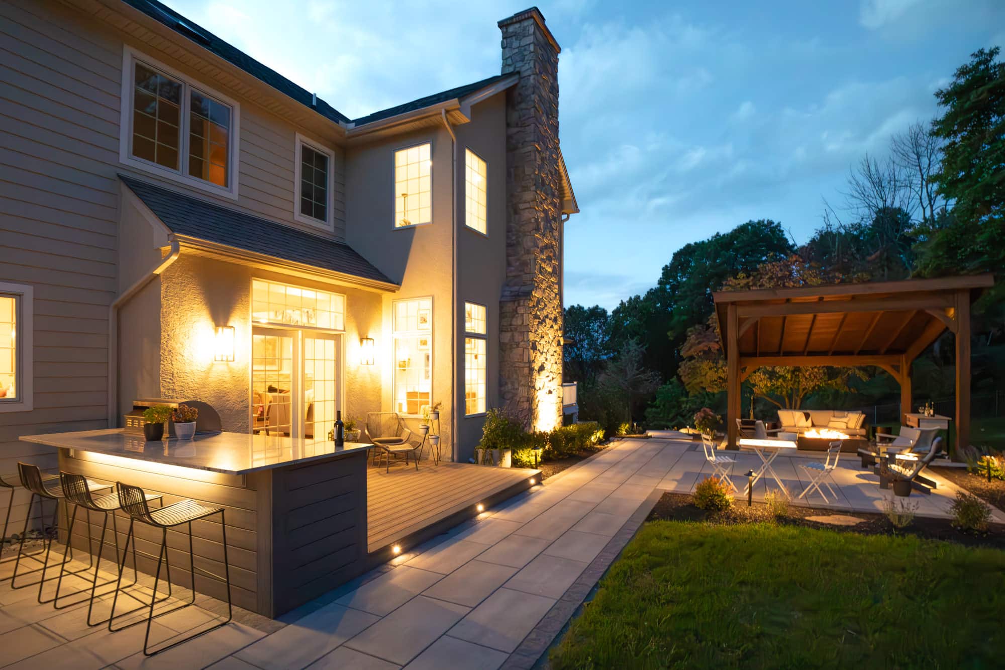 Licensed pergola contractor designing and installing custom louvered, timber frame, and attached pergolas with integrated lighting, fans, and screens across the Lehigh Valley.